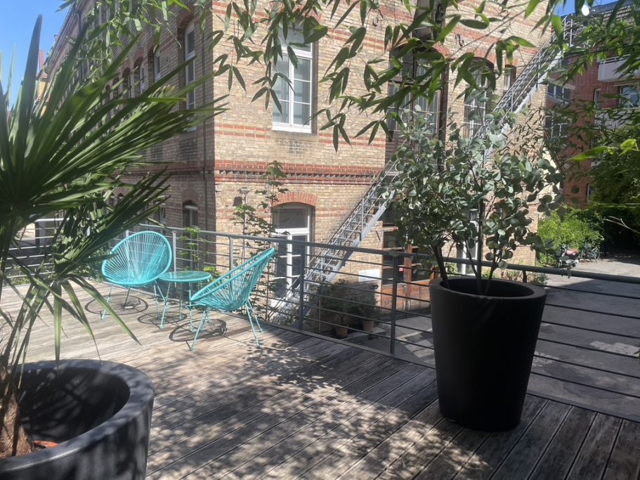Auf insgesamt 170 qm erwarten dich lichtdurchflutete, hochwertig gestaltete Räume mit einer 30 qm Sonnenterrasse. Ideal für Stunden- oder Tagesvermietung – auf Wunsch auch als dauerhafte Untervermietung.